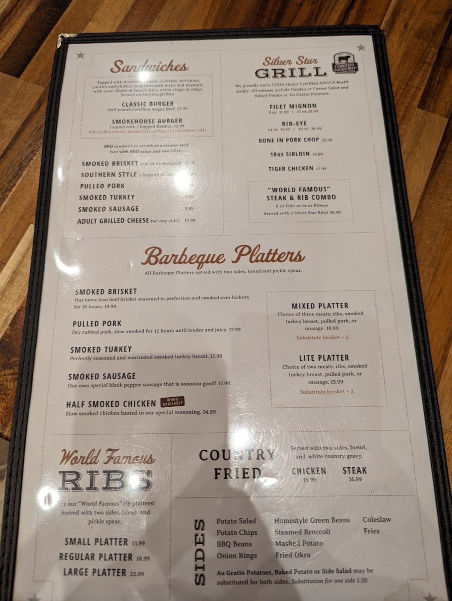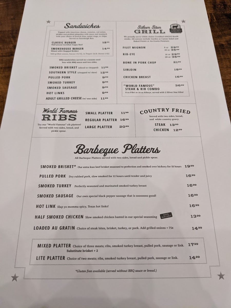 8oz Filet or 14oz Ribeye served with 2 Silver Star Ribs